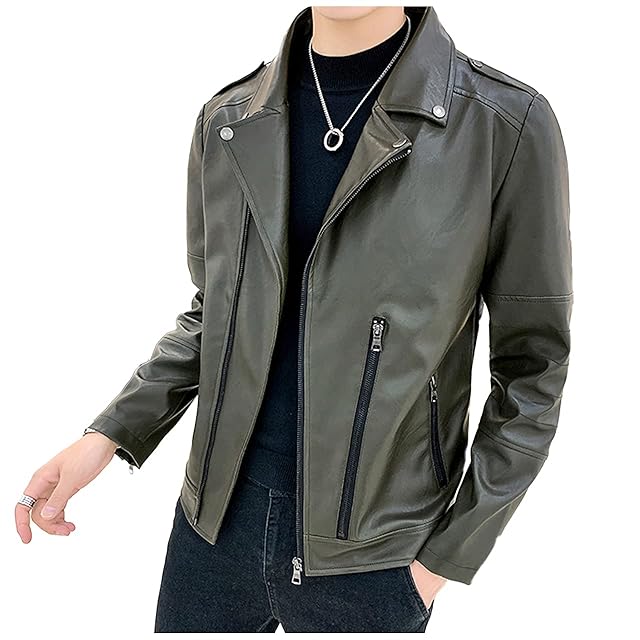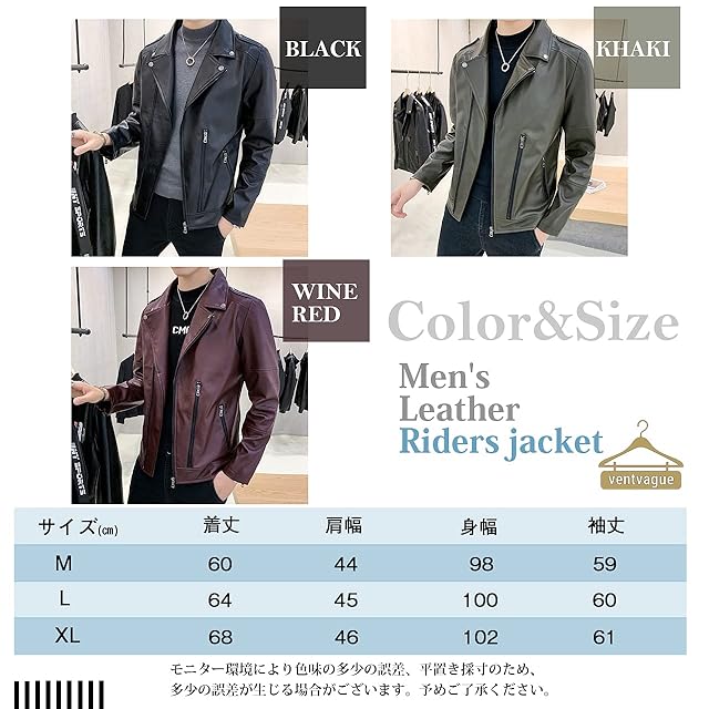 [ヴォンヴァーグ] ダブルライダースジャケット PUレザー 革ジャン ジャケット ジップ ポケット アウター (03.XL, カーキ)