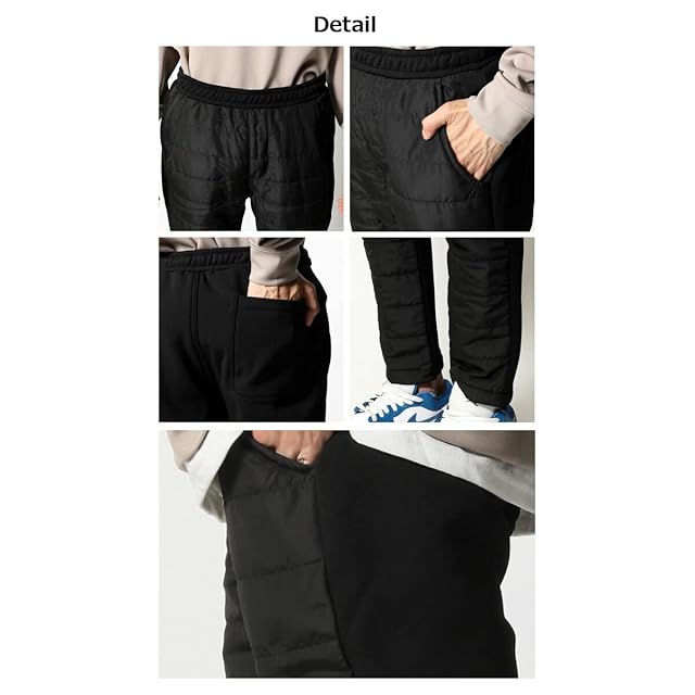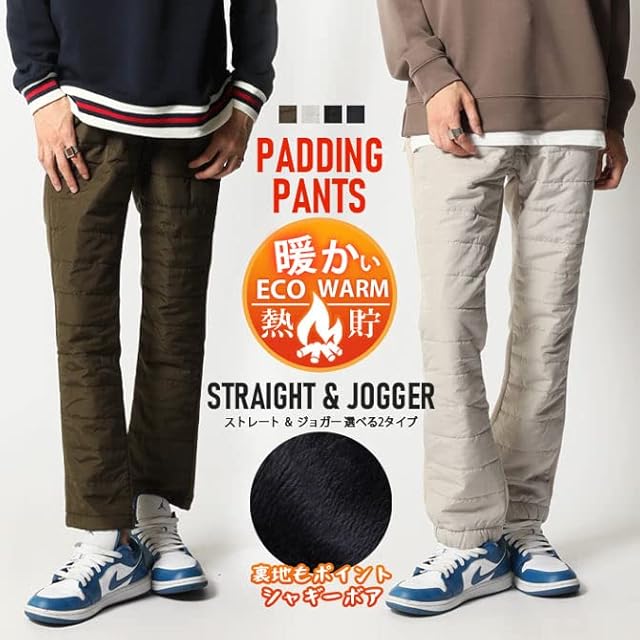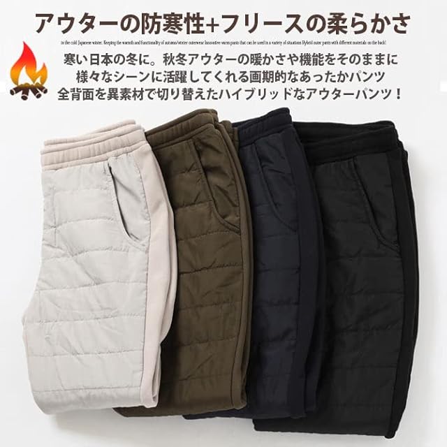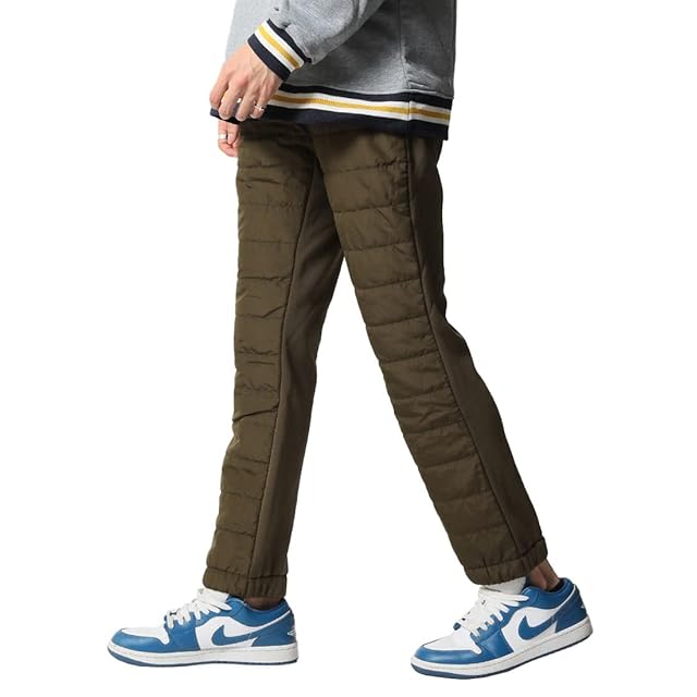 [アーケード] 中綿 ダウンパンツ メンズ 裏地フリース ボア フェイクダウン×スウェット スキニーパンツ ジョガーパンツ M カーキ(ジョガータイプ)