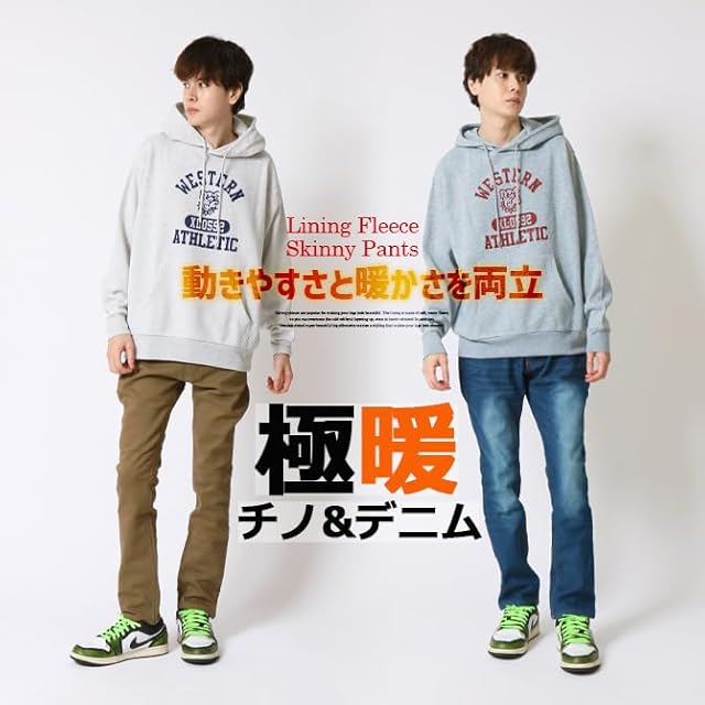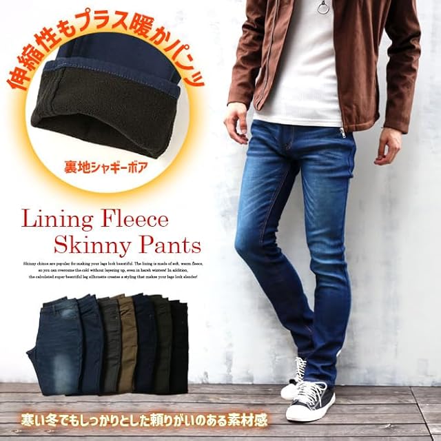 [アーケード] チノパン メンズ あったか 裏フリース ストレッチ スキニー デニム ジーンズ 暖パンツ L カーキ(チノ)