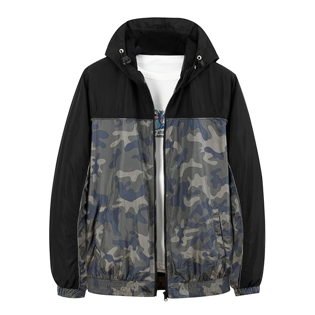 [MYJAJAYI] ウィンドブレーカー メンズ パーカー ジャケット フード付き マウンテンジャケット 軽量 防風 撥水 迷彩 ブルゾン アウトドア 春秋着 M