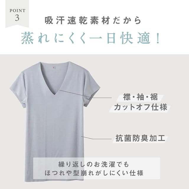 [グンゼ] インナーシャツ YG 清涼CUT OFFシリーズ VネックTシャツ 脇パッド付 短袖深V YV1912 メンズ クリアーベージュ L