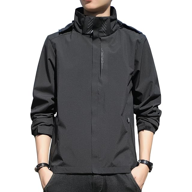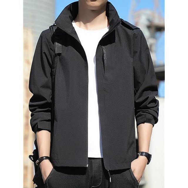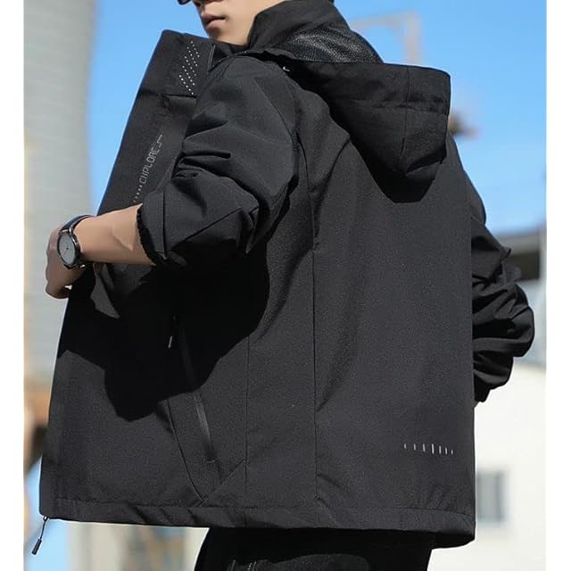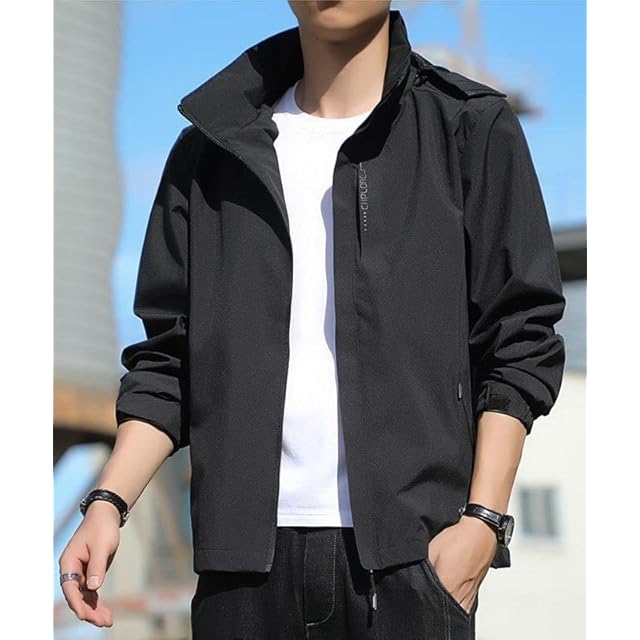 [アスペルシオ] フルジップ 立襟 パーカー お洒落 アウター メンズ カッコいい ストリート系 長袖パーカー スポーツウェア スタンドカラー チャック付き フーディー ウィンドブレーカー フード付き マウンテンパーカー ウインドブレーカー ブルゾン パーカ ヒップホップ ファッション ベーシック デザイン 上着 ジャンパー カジュアルジャケット ジャケット ナイロンパーカー (2XL) ブラック