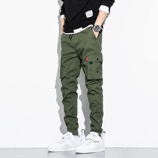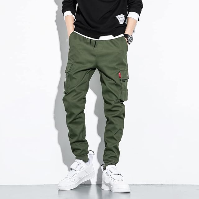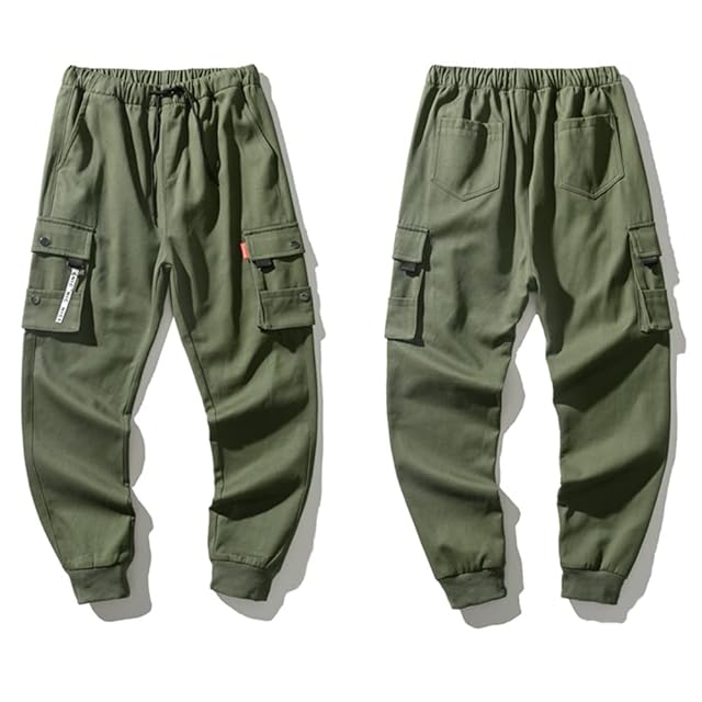 カーゴパンツ メンズ パンツ 九分丈 8部丈 ロングパンツ 6ポケット 作業ズボン ワークマン 調整紐 綿 細身 春夏秋冬 グリーン JY0527-1912-GREEN-2XL-3XL