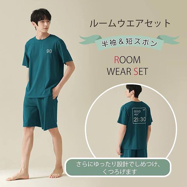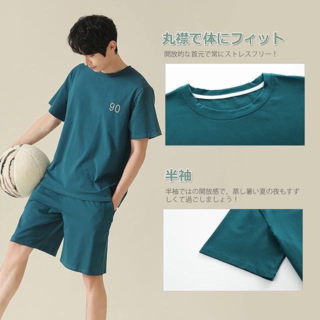 [Bellislove] パジャマ メンズ 夏 綿 2点セット ルームウェア 涼感 半袖 ショートパンツ ゆったり 肌に優しい 薄手 快適