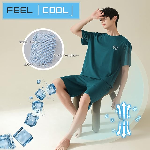 【生地感】清涼感のあるなめらかで肌触り良いパジャマです。柔軟、快適、弾力のあるストレッチ素材だから、ストレスフリーで履き心地抜群です。サラリと着こなせるの好印象ポイントで、暑い日も快適に過ごすことが出来るこだわりの1着です