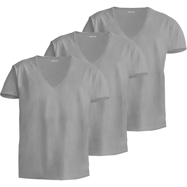 [fun.] インナーシャツ メンズ 夏 吸汗速乾 接触冷感 3枚組 Vネック 帝人 AIRCTIVE グレー 2L
