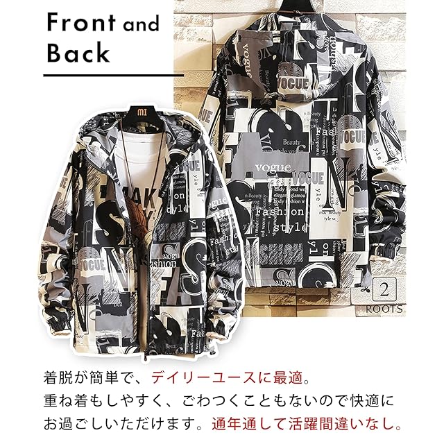 定番コーデでも周りと差をつけられる1着。 派手過ぎず程よく個性的なデザインが、おしゃれ度をグッとアップさせるウインドブレーカー。 いつものコーデにパッと合わせるだけで、一気にお洒落な着こなしに変わります。 Tシャツやシャツなどのトップスに、デニムやジーンズ、スキニーパンツやハーフパンツ、ジョガーパンツやカーゴパンツ、サルエルパンツなどを組み合わせてかっこよく着こなせます。 特にシンプルコーデとの組み合わせが、バランスの良いコーディネートに仕上がるのでおすすめです。 また、ジャージ等のスポーティーなアイテムとも相性よく合わせられます。 流行り廃りも気にせず着られて、10代、20代、30代、40代、50代、60代と多くの方におすすめの柄入りジャンパー。 通勤や通学、会社や学校、作業着や仕事着、アウトドアやレジャー、ドライブや旅行、ジョギングやウォーキング、散歩やサイクリング、 イベントやお出かけ、デートや記念日、部屋着やパジャマ、ルームウェアなど幅広いシーンで使えるのでとても便利です。 親子や兄弟で着回したり、プレゼントやギフトにもいかがでしょうか。