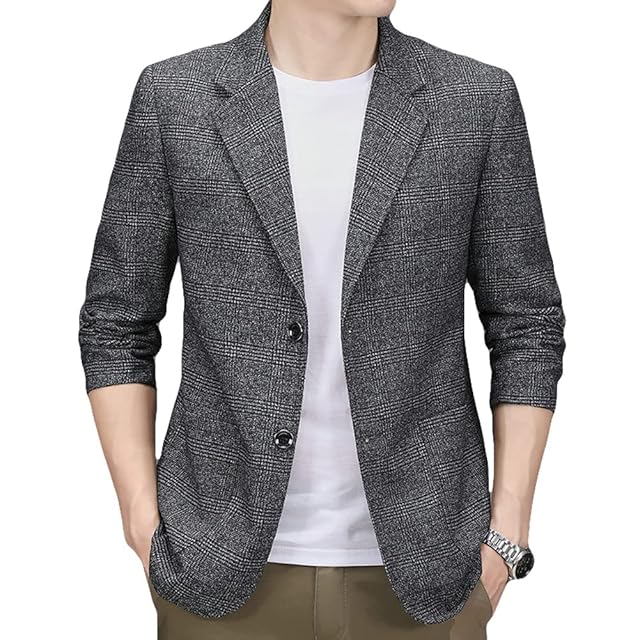 [チーアン Tiann] メンズ ジャケット スーツジャケット テーラードジャケット コーデュロイジャケット カジュアルジャケット チェック柄 ジャケット スリム 通常 ビジネス 長袖 大きいサイズ 20代 30代 40代 50代 グレー 2XL