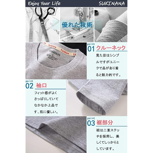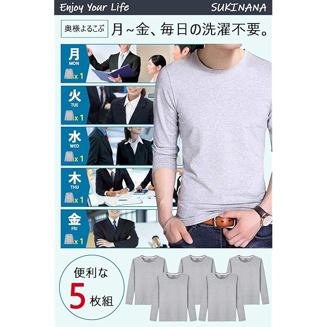 【幅広くコーデ·男女共用】 学校、通勤、部屋着、就寝時、日常レジャーに適した ベーシックのTシャツで、スポーツやアウトドアでも活躍しています。男性も女性も着ることができる、多機能のインナーシャツで。五枚セットであり出勤の日に自由に選択します。