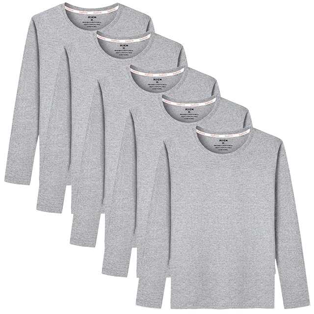 Sukinana インナーシャツ メンズ 肌着 5点セット 綿100% 長袖 tシャツ 丸首 防菌防臭 柔らかい 快適 メンズ 服 春 秋 冬 (2XL, グレー)