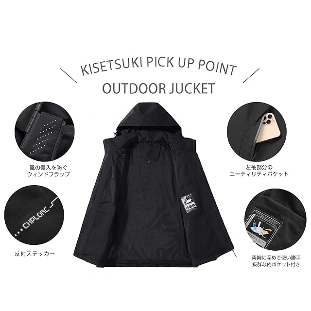 [KISETSUKI] ウインドブレーカー ジャンパー メンズ ジャケット アウトドア 防風 防寒 大きいサイズ 軽量 マウンテンパーカー ブルゾン カジュアル 秋服 秋 冬 春 (グレー,2XL)
