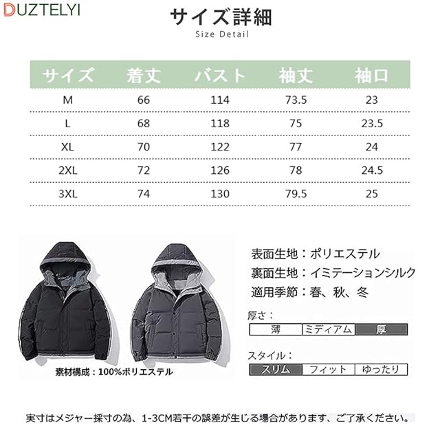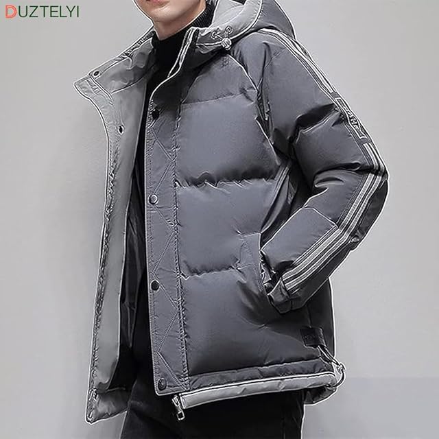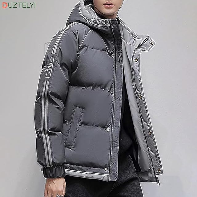 DUZTELYI 中綿ジャケット メンズ 大きいサイズ アウター フード付き ジャケット 防寒 暖かい 厚手 お洒落 洗える 冬服 DU814 (2XL, グレー)