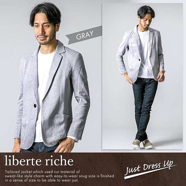 [liberte riche] リベルテ リッシュ メンズ ジャケット テーラードジャケット スウェット ビジネス カジュアル 細身 ストレッチ 6color 6サイズ展開 グレー 2XL