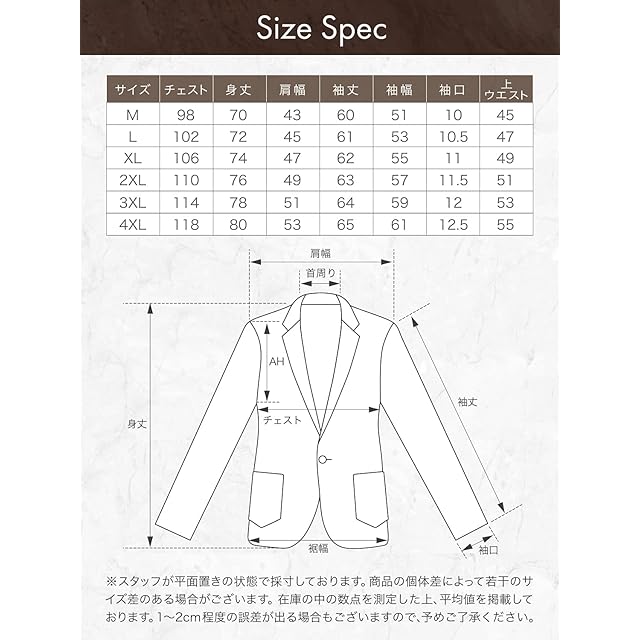 【Model Size】身長:186㎝/チェスト:90㎝/肩幅:48㎝/袖丈:68㎝ 【着用サイズ】L