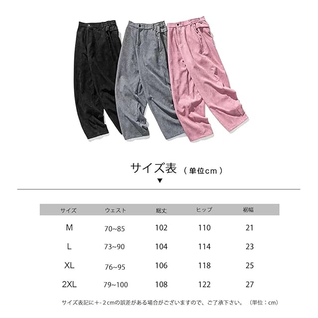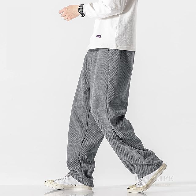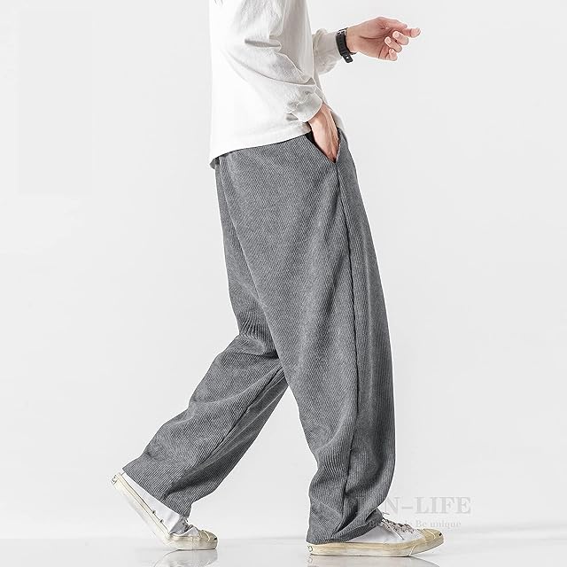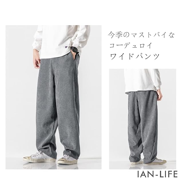 [IAN-LIFE] コーデュロイパンツ メンズ ワイドパンツ ウエストゴム ガウチョ ゆったり バギーパンツ 大きいサイズ オーバーサイズ カジュアル 部屋着 春 秋 冬 4色 M-5XL展開