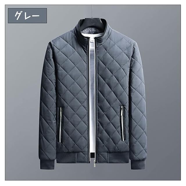 [ZHENGTU] キルティングジャケット ダウンジャケット メンズ ジャケット 裏起毛 防寒 ブルゾン 通勤 無地 アウター 保温ジャケット 大きいサイズ 秋冬 (グレー,2XL)
