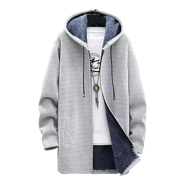 WOFOSY ロングコート メンズ ロングパーカー 裏起毛 暖かい 防寒 防風 アウター ジャンパー フード付き ジップアップ ジャケット 秋冬 SY170 (L, グレー)
