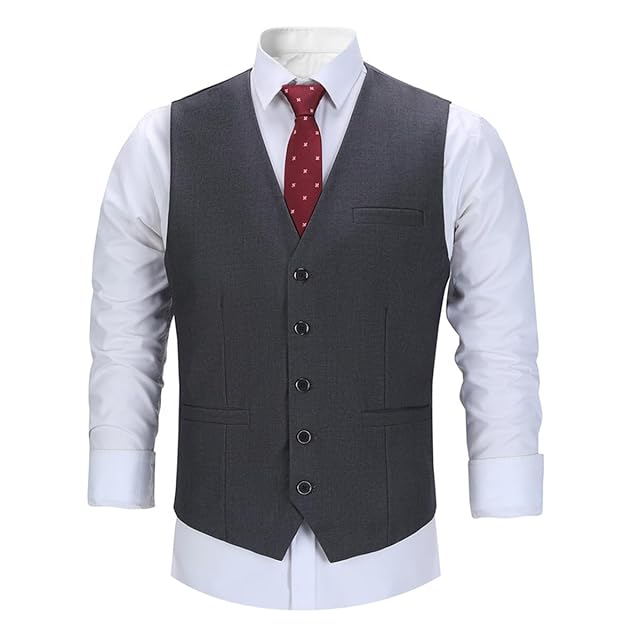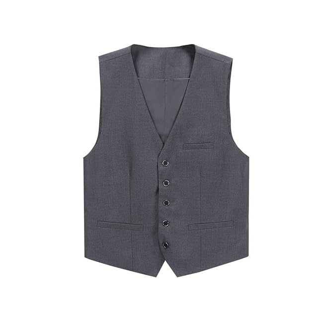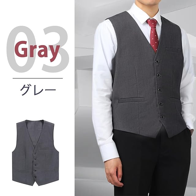 [ByFshow] スーツ ベスト メンズ ジレ 紳士 スリム Vネック 3ポケット 5ボダン 尾錠付き 結婚式 上質 無地 ビジネス フォーマル カジュアル グレー 春夏秋冬