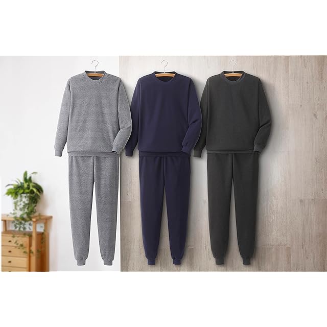 裏起毛と厚手ニット素材で保温性抜群。秋冬の寒い日も暖かく快適。部屋着にも外出着にも活躍するメンズスウェット上下セットです。