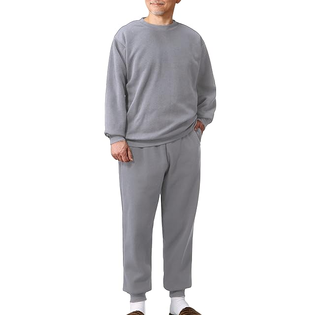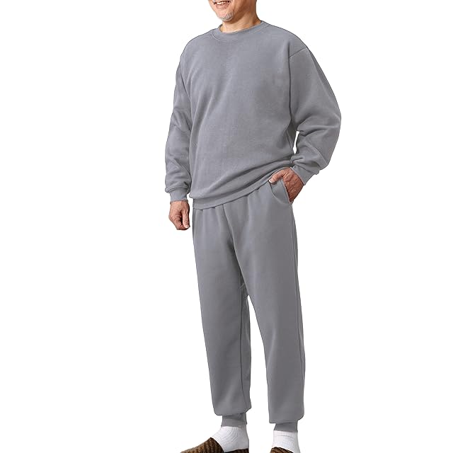 [リトルアイランド] 裏起毛 スウェット M メンズ 上下 パジャマ 無地 寝巻 ルーム ウエア 部屋 リブ ゆったり セットアップ ジャージ 暖か M/グレー