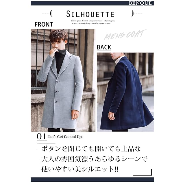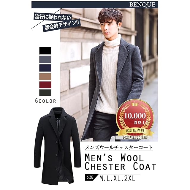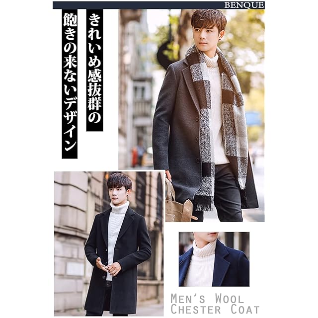 [ベンケ] コート メンズ ビジネス 春秋 チェスターコート 暖かい カジュアル スーツ ロング ウール 春物 春服 アウター 裏地あり 防寒
