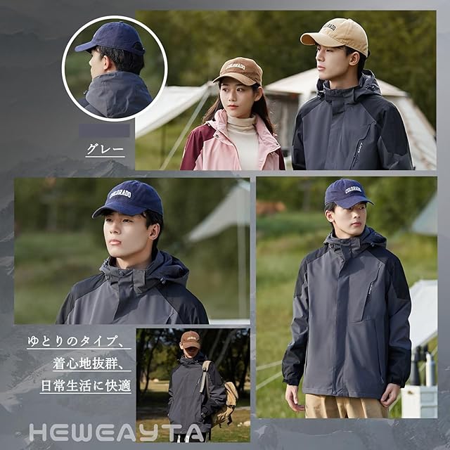 適用者:このマウンテンジャケットはシンプルなデザインなので、日常生活に服と合わせてやすいです。四つのカラーが選択でき、ブラック、グレー、ネイビー、ブルーなど日常的なカラーは服と合わせてやすいです。20代、30代、40代、50代が最適です。