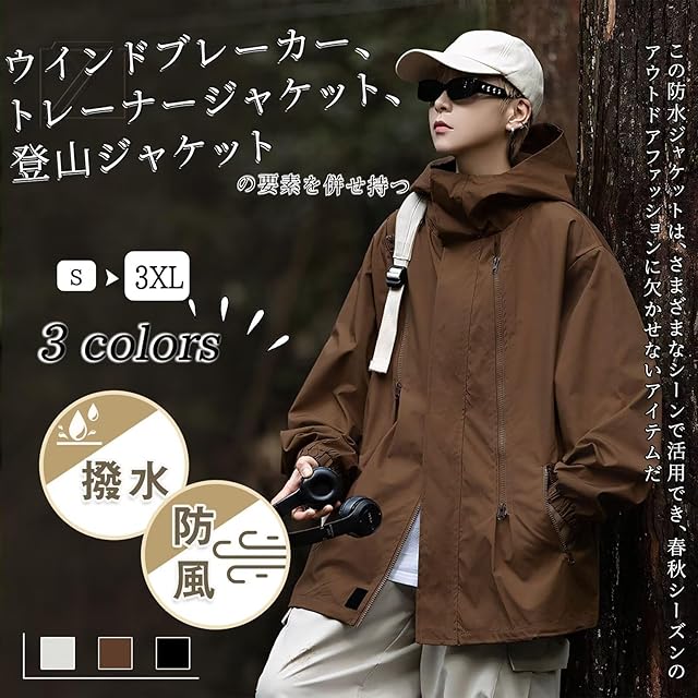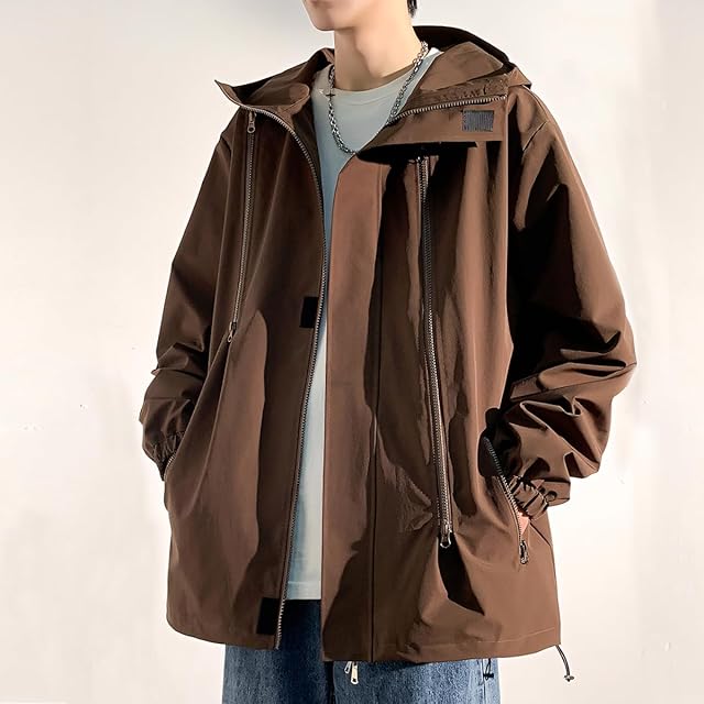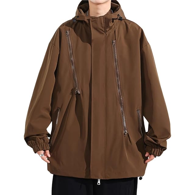 [inotenka] ウインドブレーカー メンズ ジャケット 防水 マウンテンパーカー ジャンパー ブルゾン 防風 撥水 大きいサイズ アウトドア カジュアル 秋服 春服 登山 キャンプ 無地(L コーヒー)