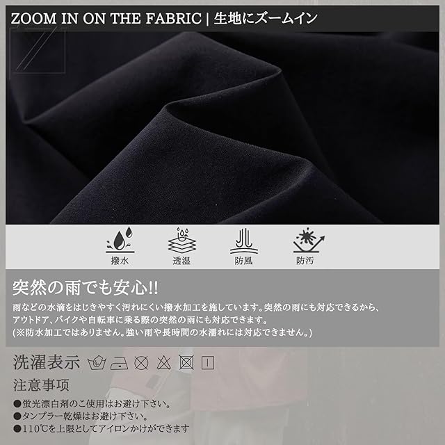 【ジャケットデザイン】このフード付きアウターは、ミニマルだが実用的なデザイン。 アノラックパーカーの開閉はジッパーとベルクロの二重構造。 服の外には飾りジッパーが2つあり、スタイリッシュな印象を高めています。 ポケットは全部で3つあり、フロントポケットにはジッパーが付いているので、小物を入れる際により安全です。 内側にもポケットがあり、スマートフォンなどの収納に便利。 風の入り込みを防いでくれるフード一体型のハイネックデザインやゴムギャザー仕様の袖口、裾の絞りを調節できるドローコードなど、マウンテンパーカーらしい機能性を持つディテールはしっかりと取り入れております。