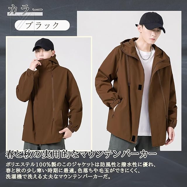 【マウンテンジャケットの機能性】ポリエステル100%製のこのジャケットは防風性と撥水性に優れ、春と秋の少し寒い時期に最適。色落ちや毛玉ができにくく、洗濯機で洗える丈夫なマウンテンパーカーだ。滑らかで流れるような軽量の裏地により、着脱が簡単でありながら、ユニークなファブリックが際立ちます。