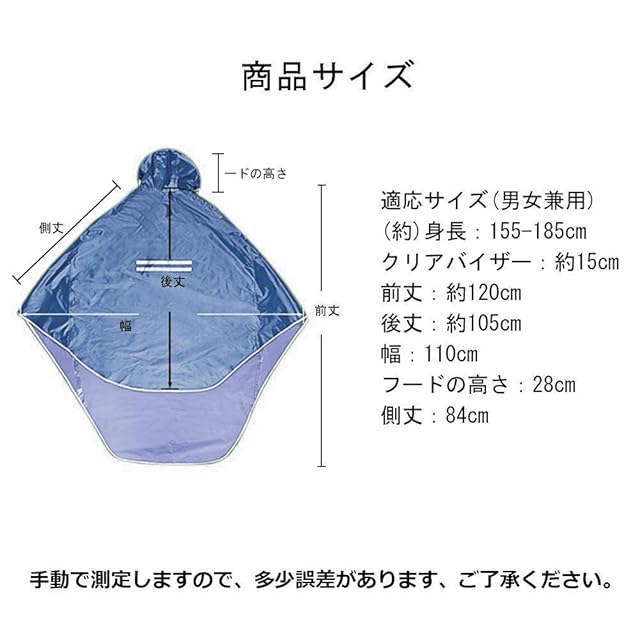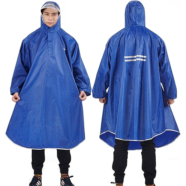 QIAN レインコート レインポンチョ 男女兼用 メンズ レディース 自転車 原付に はっ水雨具 軽量 通学 通勤 防汚 防風 収納袋付き (サファイア色)
