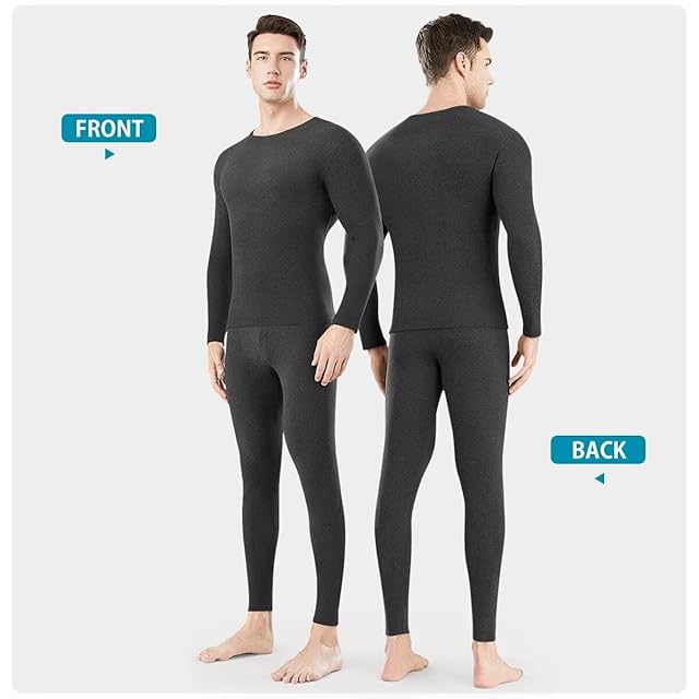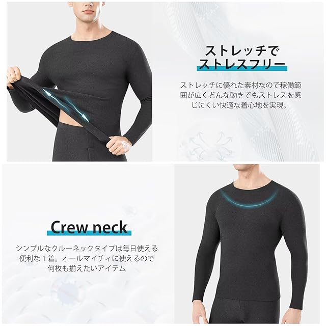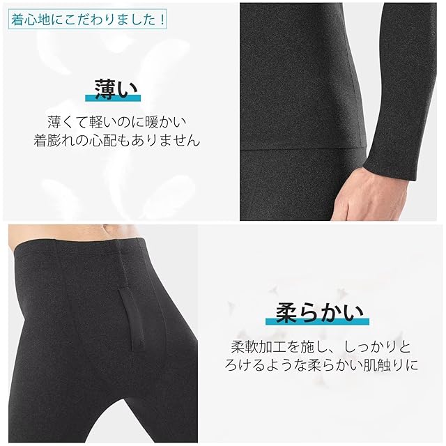 [Nesseo] 防寒肌着 メンズ あったかインナー 上下セット 保温インナー 両面起毛 インナーウェア 長袖シャツ ズボン下 薄手 冬用 1137M-set-bb-dgr-2XL