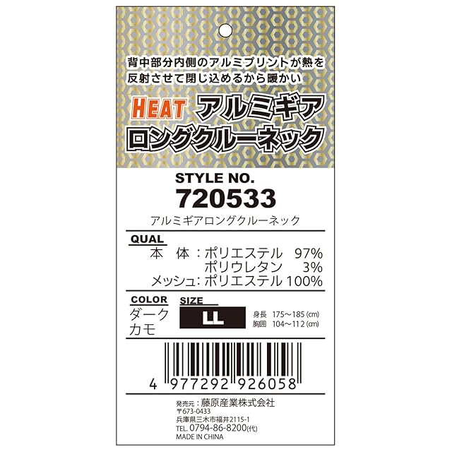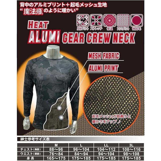 [エスケー11] アンダーシャツ HEAT アルミギア ロングクルーネック ダークカモフラ