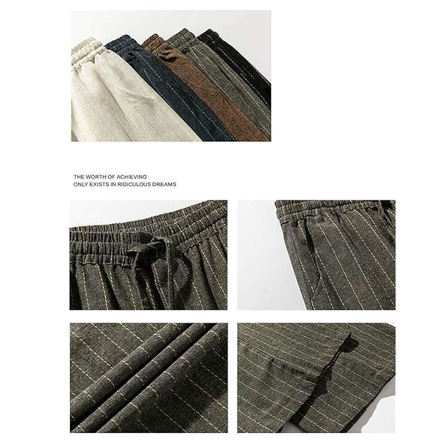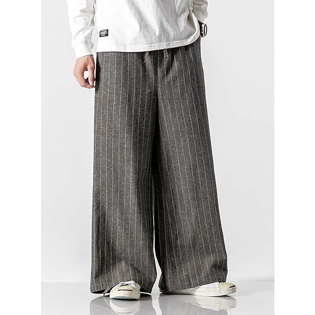 [COZOEN] ワイドパンツ メンズ フレアワイドパンツ タイパンツ ガウチョ スラックス 和式ズボン ロング丈 リネン ストライプ チェック柄 春 秋 ビッグシルエット カジュアル 5色 大きいサイズ