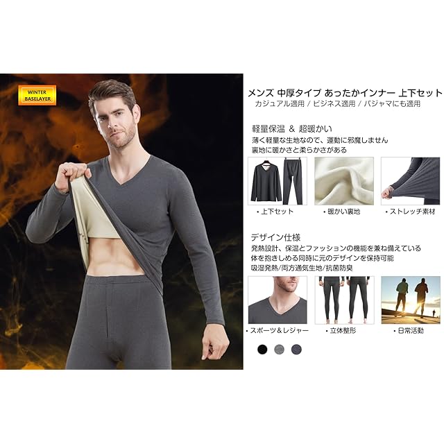 【アウトドアウェア】:あったか肌着で寒い冬も快適に!屋外の仕事や、外出が多い時など、しっかり防寒をしたいときにオススメ。スリムスタイルなのでスーツスタイルにもOK。また、保温性に優れた防寒素材で、日常生活だけでなく、スキー、ハイキングキャンプ、サイクリング、釣りスポーツなどのアウトドアスポーツでも大活躍。【※安心保証※】検品・品質には万全を期しておりますが、万が一、初期不良等発生した場合は、メールでお気軽にお問い合わせください。営業日24時間以内にご返信をしております、ご安心ください。