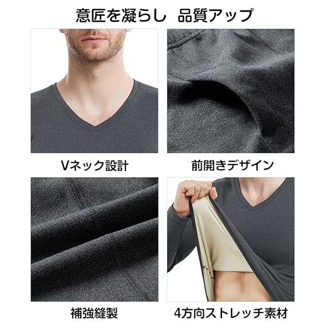 [Boyzn] あったかインナー 防寒着 長袖シャツ ズボン下 保温肌着 上下セット インナーシャツ 前開き 保温インナー[吸湿発熱・中厚・保温] Dark Gray-S