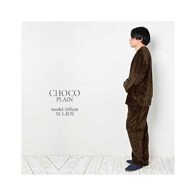 [アウニイ] パジャマ メンズ ファー フリース ラウンドトップス ラウンドネック 秋 冬 セットアップ 長袖 ロング パンツ カジュアル 部屋着 可愛い きれいめ カットソー ユッタリ おしゃれ クリスマス プレゼント 彼氏 彼女 贈り物 ギフト 夫婦 ペア お揃い 8252 (CHO L-LL)