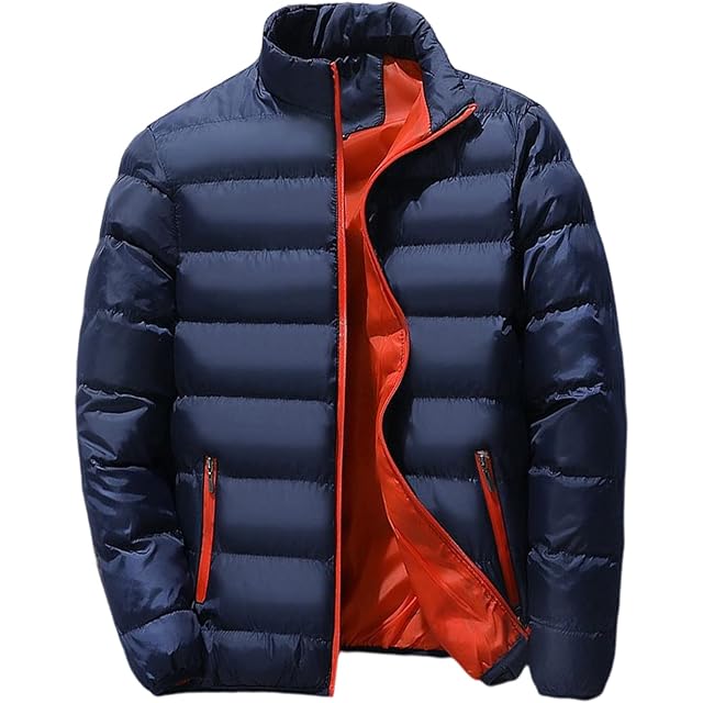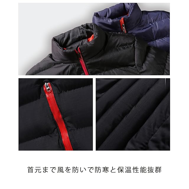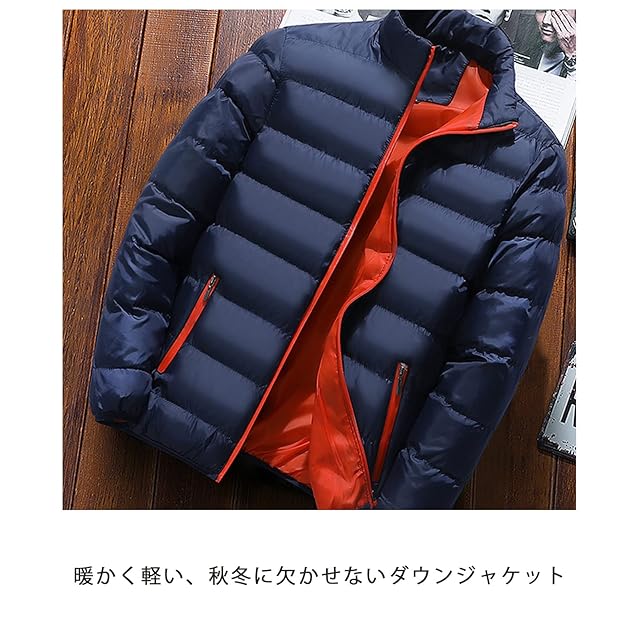 [ブランクブラン] 中綿 ジャケット ダウン ブルゾン アウター メンズ 軽量 フード無し モックネック ハイネック ミドル丈 ハーフ丈 ポケット ノーカラー クール ウルトラライト 格好いい ヘビーウェイト ビッグシルエット 無地 カジュアル ミリタリー 春 秋 冬 アウトドア ベースボール スポーツ 行楽 レジャー 紺 濃紺 青 藍色 バイカラー ネイビー 2A-B28-NV2XL