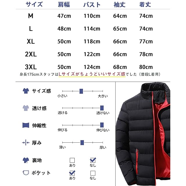 普段使いにぴったりの使いやすいジャンパーです。 軽い着心地でストレスフリー。 キルティング加工でダウンが寄らない仕様になっているので見た目はずっときれいなまま、毎日着回せますよ◎フロントジップは首元までしっかりと暖かく防風・防寒性に優れています。左右のポケットはファスナー付きで安心感抜群。内ポケットもあるので貴重品などの収納にも◎手ぶらでお出かけできて大変便利です。袖口はリブ仕様でフィット感があり防寒対策もバッチリ。快適な着心地で、しっかり暖かい優秀なアウターになっております。