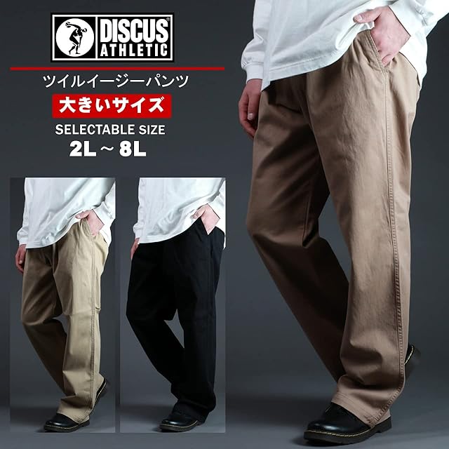 [ディスカス アスレチック] イージーパンツ 大きいサイズ メンズ ツイル 無地 LL-8L ロングパンツ ボトム ルームウェア 部屋着 LL ネイビー