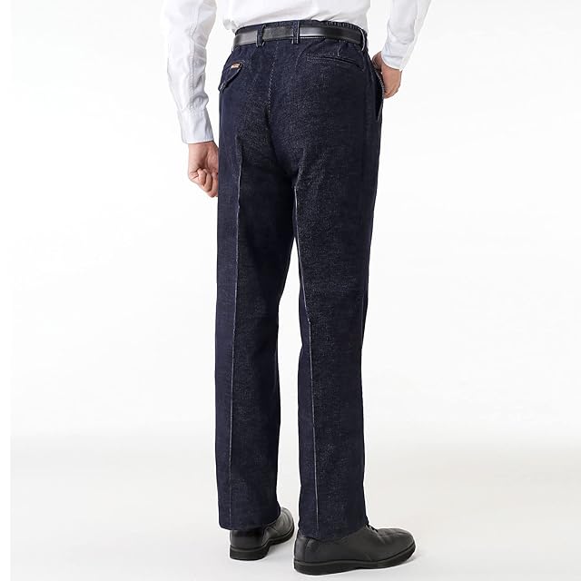 [ポールミラー] 裾上げ済み ノータック ストレッチコーデュロイパンツ (M / L75, ネイビー)
