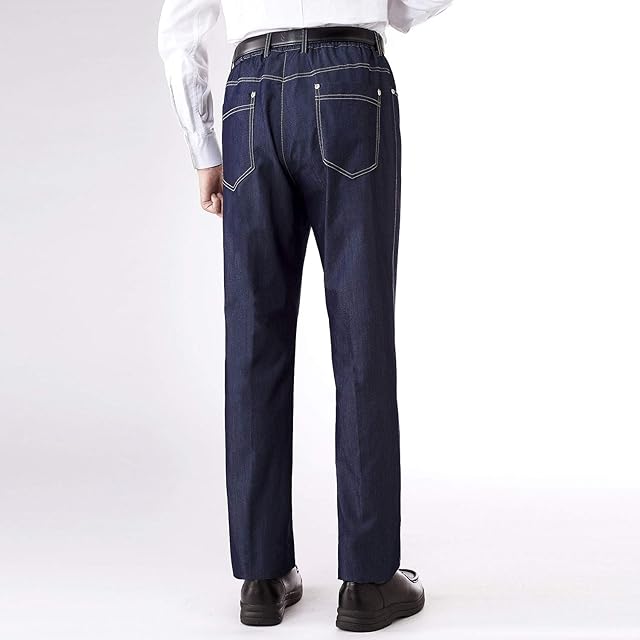 [ハンティントンクラブ] スラックス デニム クールマックス 裾上げ済 ノータック メンズ (Mサイズ(股下65), ネイビー)