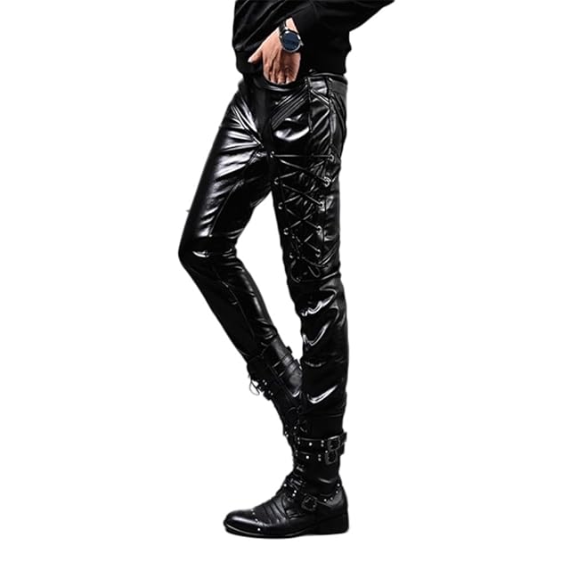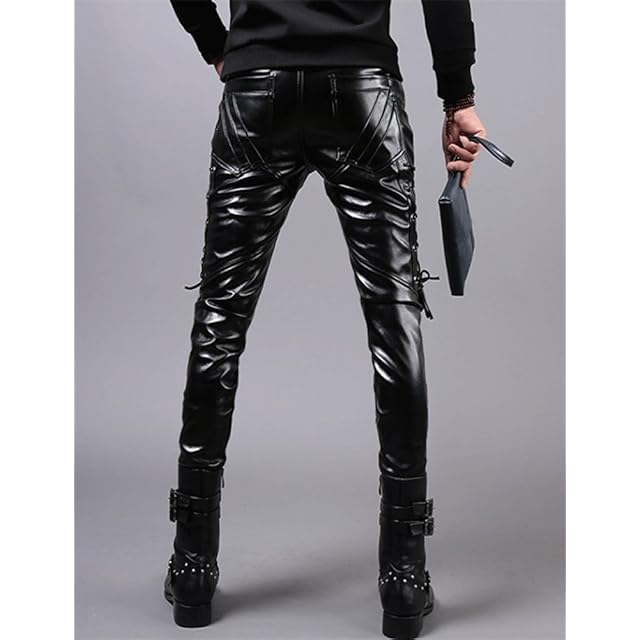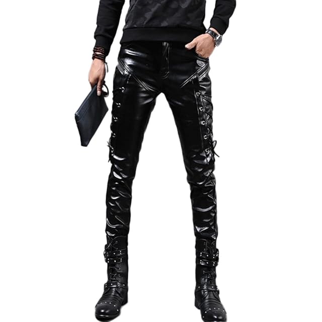 [Idopy] フェイク pu ロング パンツ メンズ スキニー スリム パンツ