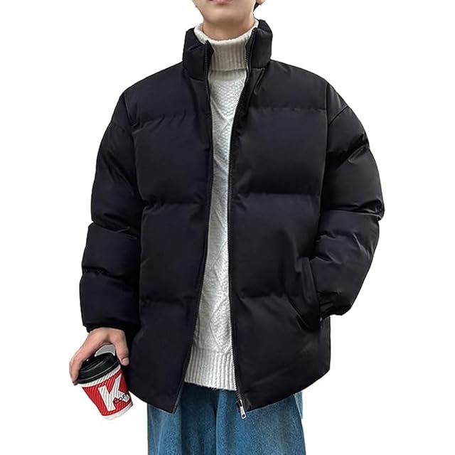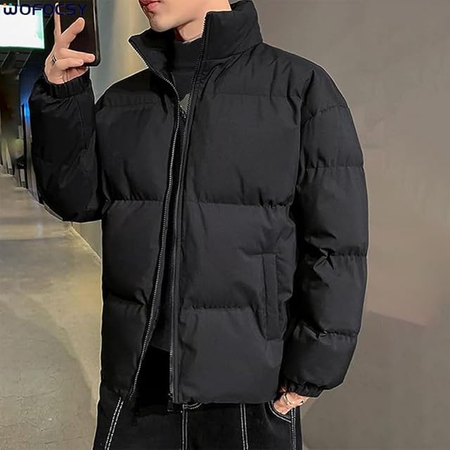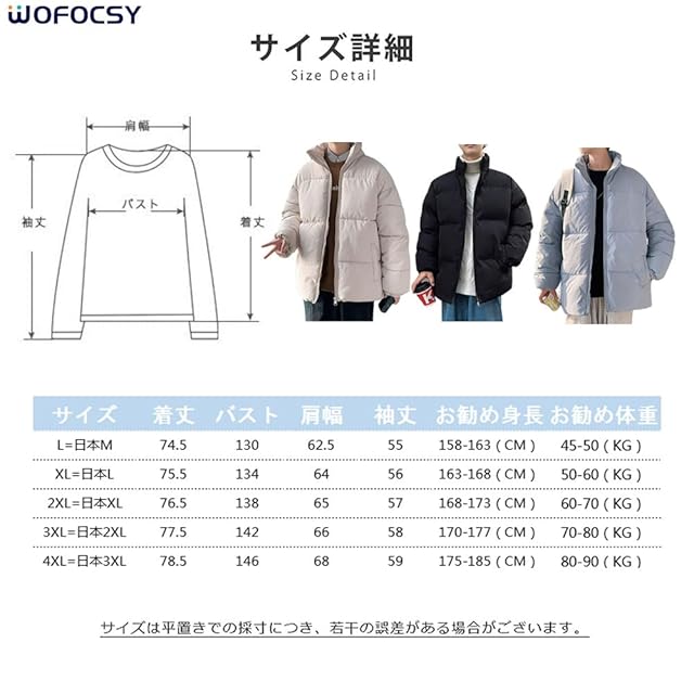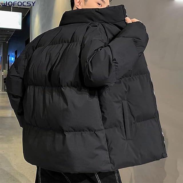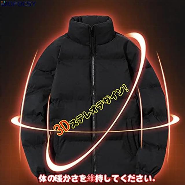 WOFOSY コート メンズ 冬服 中綿 ジャケット ブルゾン アウター 大きいサイズ ゆったり 無地 厚手 防寒 暖かい カジュアル 秋冬 SY168 (JP, アルファベット, 2XL, ブラック)