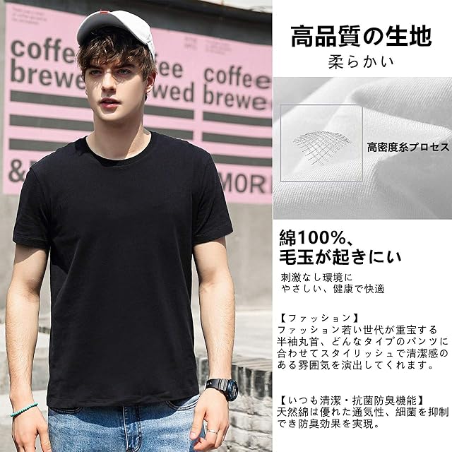 [SIPERLARI] インナーシャツ メンズ 5枚組 綿100% 抗菌防臭加工 半袖クルーネック Tシャツ やわらか肌着 黒 (ブラック, 2XL=日本L)
