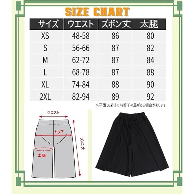 ウエストは、ゴムになっててヒモで絞れる為、丈を長めにしてスカンツに、丈を短めにしてスカーチョにするなどユニセックスとしてレディースの方にも使って頂けるワイドハカマパンツでサルエルパンツやガウチョパンツを探されてる方にもおすすめで是非チェックしてみてください。