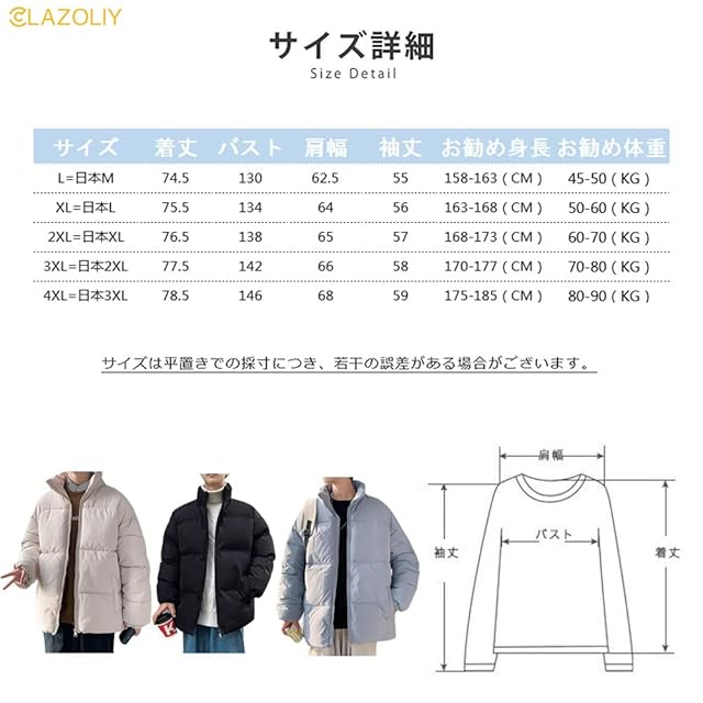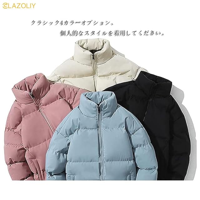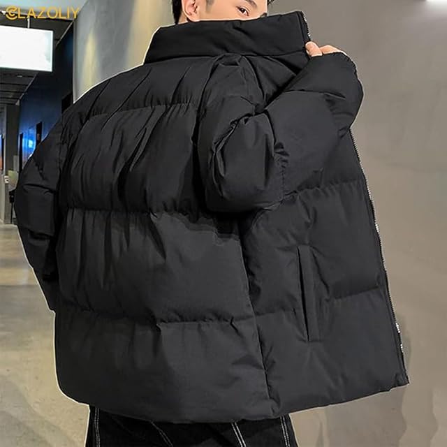 CLAZOLIY 中綿 ジャケット メンズ コート 冬服 大きいサイズ ブルゾン アウター ゆったり 無地 厚手 防寒 暖かい 防風 カジュアル CL143 (2XL, ブラック)