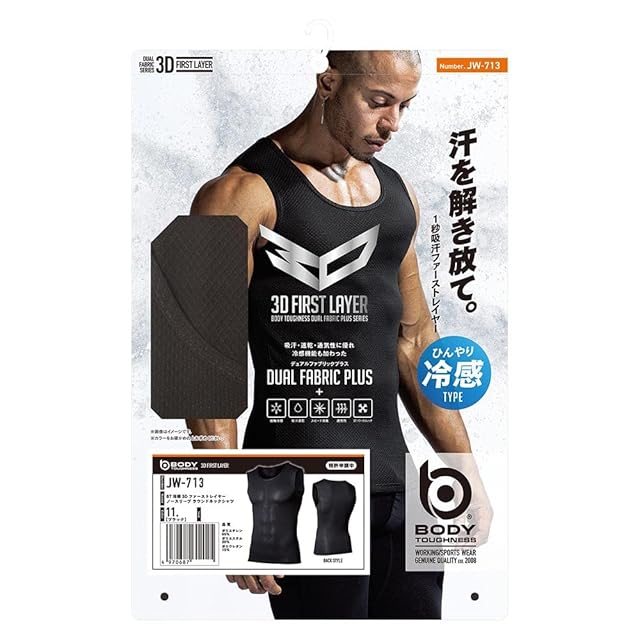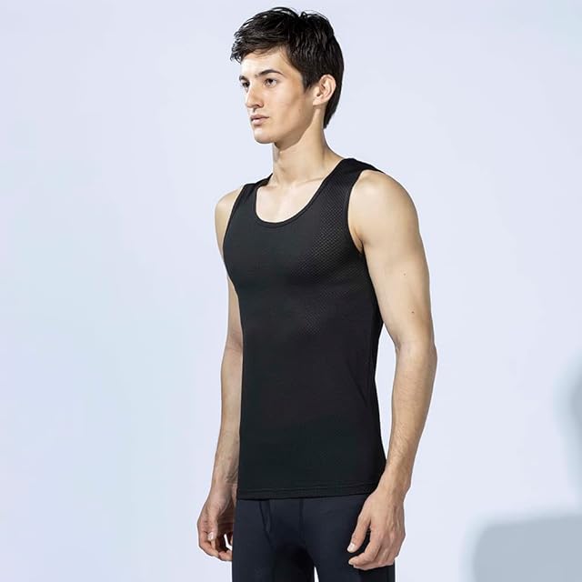 おたふく手袋(Otafuku Glove) 夏用インナー ノースリーブ ラウンドネック ファーストレイヤー[吸汗速乾 メッシュ 消臭 通気性 ストレッチ素材]JW-713 ブラック 3Lサイズ