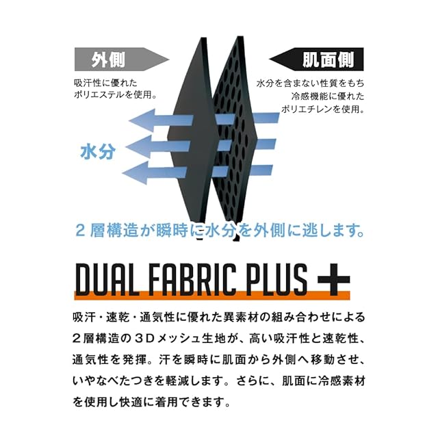 3D構造の2層ファブリックが汗冷えやべたつきなどを軽減