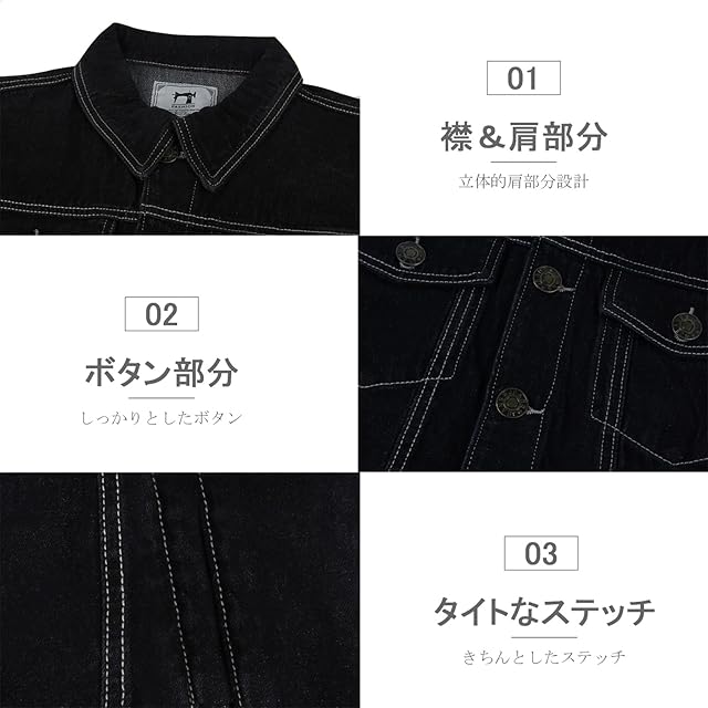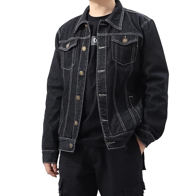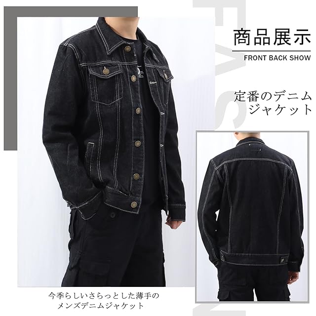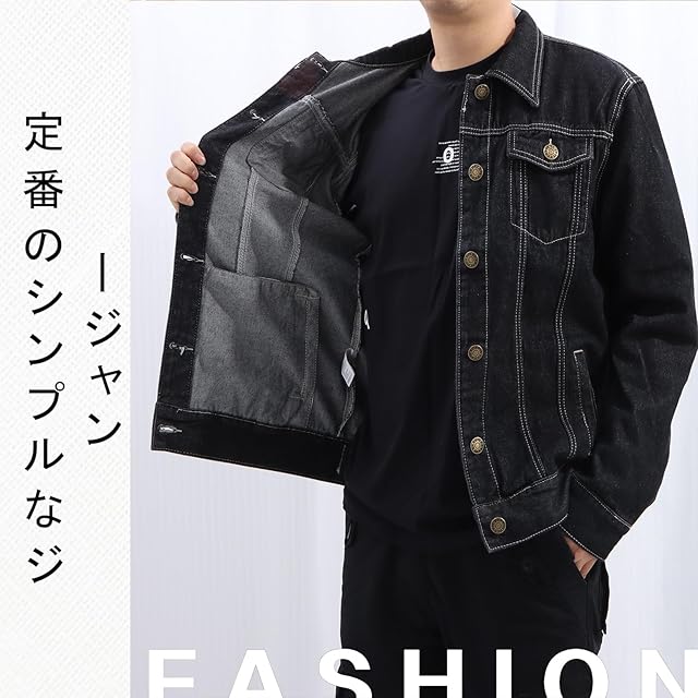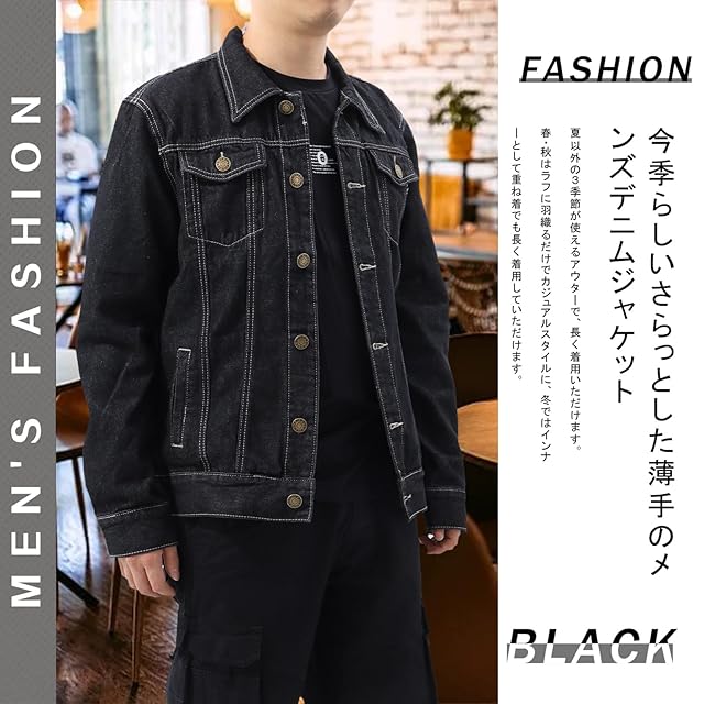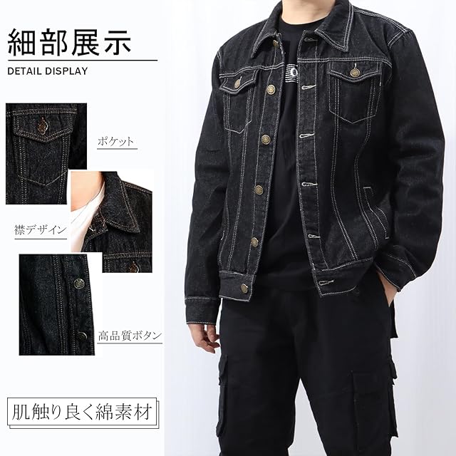 [Neimo] コットンツイル デニムジャケット Gジャン 春 秋 カジュアル メンズ(ブラック,3XL)