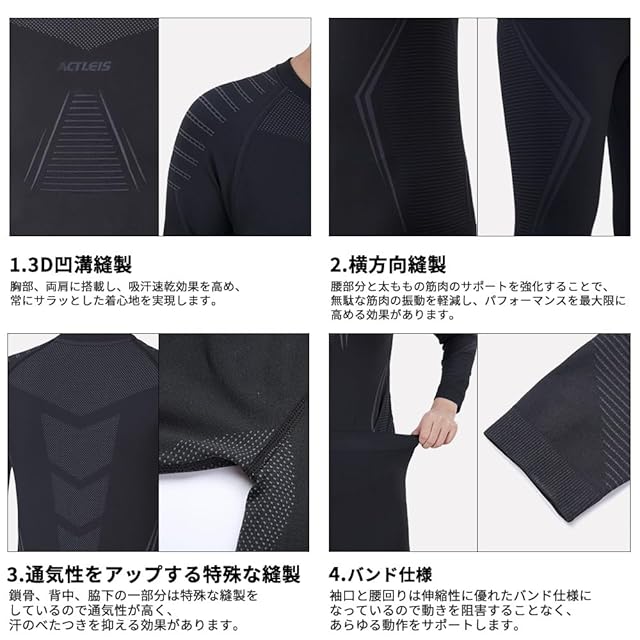 [アクレイス] スキー スポーツ インナー メンズ 上下セット 防寒コンプレッションインナー 吸汗速乾 保温 防寒肌着 伸縮性 通気性 秋 冬用 スノーボード アウトドア ランニング 登山 アンダーウェア al23016 m l xl